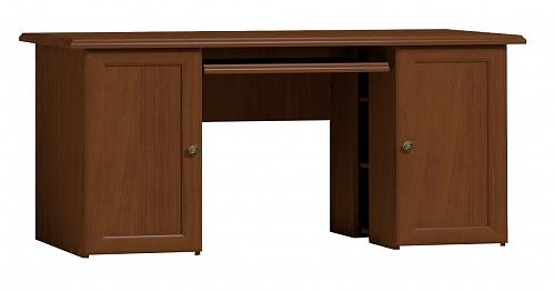 Удобный письменный стол для дома или офиса. Широкая столешница обрамлена в профиль МДФ. Слева под столешницей располагается выдвижной модуль с тремя полочками. На них легко рассортировать документы и папки, а ограничитель из профиля МДФ не даст им упасть. Высота свободного пространства между полками - 197 мм, высота свободной площади над самой верхней полочкой - 43 мм. На ней закрепляется лоток под канцелярские принадлежности, можно положить телефон или планшет. За распашной дверцей справа ниша с двумя полками. Их можно не устанавливать. В таком случае ниша представляет собой вентилируемое отделение для системного блока. Под столешницей находится выдвижная панель для клавиатуры.