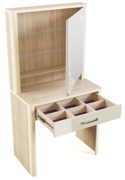 - Вместительный выдвижной ящик обшит мягкой тканью.