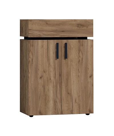 NEO 89 Тумба для обуви в декоре Дуб Табачный - удобная и продуманная система хранения обуви для всей семьи. За глухими распашными фасадами расположены две полки под уклоном. Полки регулируются по высоте, для этого полкодержатели необходимо установить в подготовленные отверстия. Верхний выдвижной ящик открывается за свес. Ящик удобен для хранения мелочей или средств по уходу за обувью.
