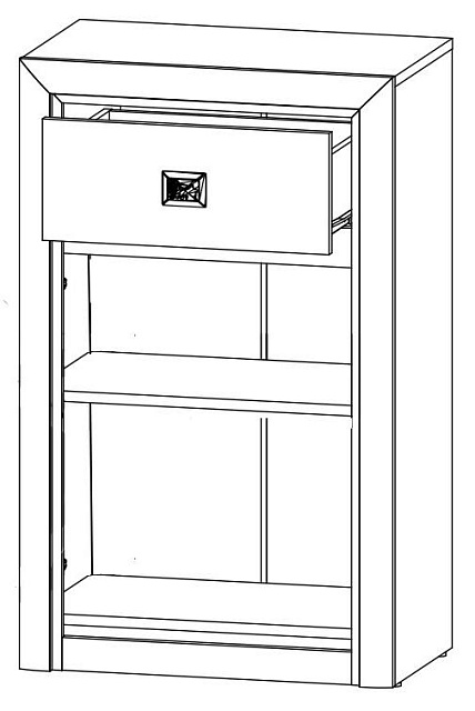 - Тумба разделена на 2 отделения: выдвижной ящик на металлических роликовых направляющих и отделение с полкой за распашной глухой дверью;