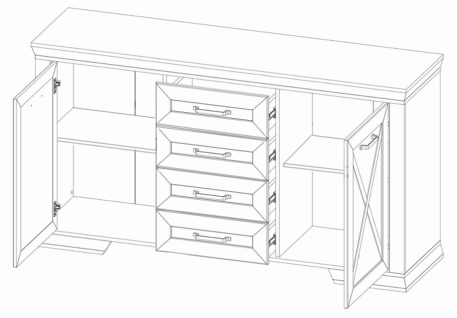 - 2 распашные двери и 4 выдвижных ящика на металлических шариковых направляющих;