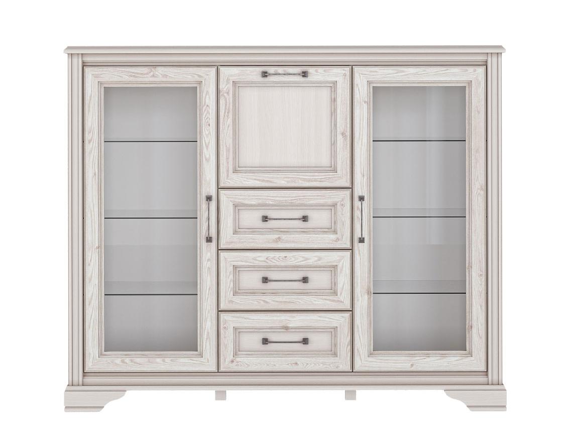 - По обе стороны 2 двери со стеклянными вставками, за которыми расположены стеклянные полки;
