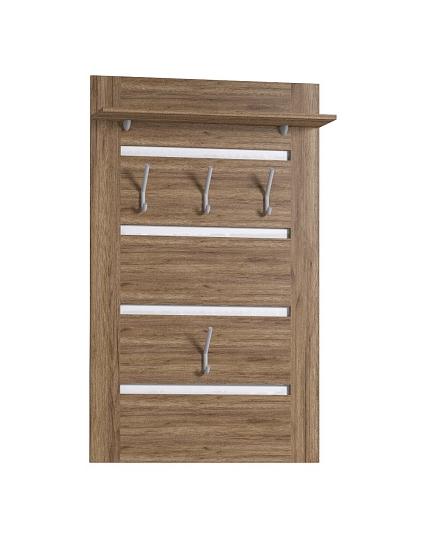 Настенная вешалка в прихожей имеет первостепенное значение. Верхняя полка для головных уборов глубиной 229 мм. Крючки расположены на разной высоте. Всем членам семьи будет удобно вешать и снимать верхнюю одежду – каждому по росту. Сверху можно вешать куртки и пальто взрослых членов семьи, а снизу — детскую верхнюю одежду, зонтики, сумки и другие аксессуары.