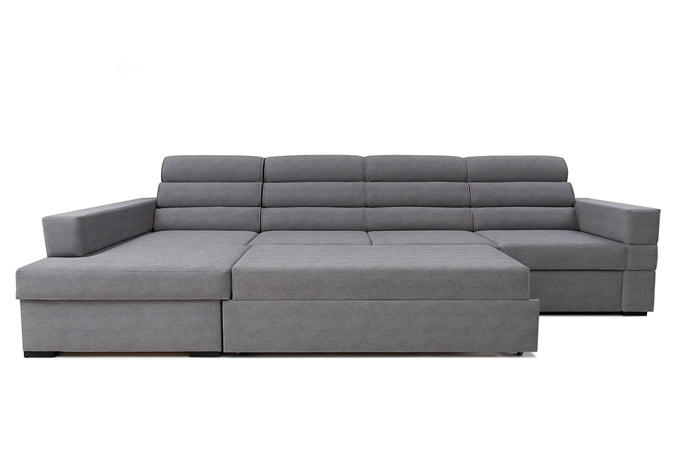 Диван-кровать угловой Эмилия 2 — удобная, простая модель, с большим спальным местом. В разложенном виде представляет удобную 2-х спальную кровать. Отличительной чертой от дивана-кровати углового Эмилия является наличие дополнительного сектора по длине дивана. Сидение на основе независимого пружинного блока. Имеется емкость для постельных принадлежностей в угловой части дивана. Подушки спинки не съемные, оснащены механизмом, который позволяет менять угол наклона. В комплект входят 3 декоративные подушки. Возможна комплектация левого и правого угла. Может изготавливаться в разных цветовых решениях. Механизм трансформации — «дельфин».
