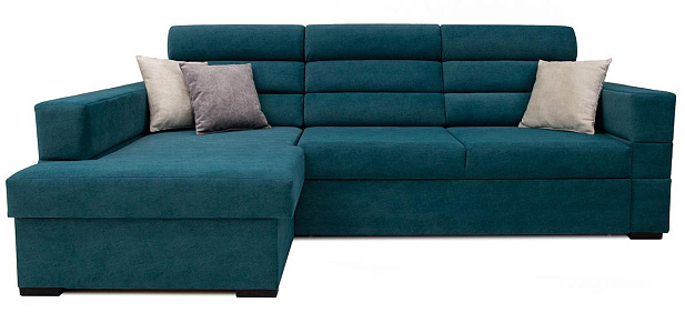 Диван-кровать угловой Эмилия — удобная, простая модель, с большим спальным местом. В разложенном виде представляет удобную 2-х спальную кровать. Сидение на основе независимого пружинного блока. Имеется емкость для постельных принадлежностей в угловой части дивана. Подушки спинки не съемные, оснащены механизмом, который позволяет менять угол наклона. В комплект входят 3 декоративные подушки. Возможна комплектация левого и правого угла. Может изготавливаться в разных цветовых решениях. Механизм трансформации — «дельфин».