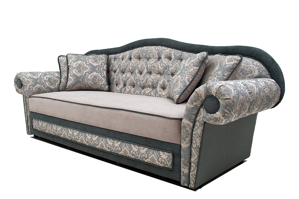 Диван-кровать Людмила — современная классическая модель с оригинальным дизайном спинки и боковин. Верхнее сидение на основе пружинного блока и пружинной змейки. Выдвижное сидение на основе пружинного блока. Спинка на основе пенополиуретана. В разложенном виде представляет 2-х спальную кровать. Так как выдвижная часть дивана находится под основным сидением, отсутствует короб для хранения. Основание сидения – пиломатериалы хвойных пород. В комплект входят 4 декоративные подушки. Может изготавливаться в разных цветовых решениях. Механизм трансформации — «пума»