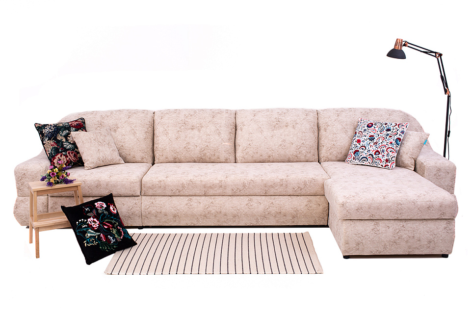 Диван-кровать угловой Ульяна 1 — удобная, простая модель, с большим спальным местом. Отличается от диван-кровати угловой Ульяна наличием дополнительного модуля. Возможна комплектация левого и правого угла. В разложенном виде представляет удобную 2-х спальную кровать. Сидение на основе независимого пружинного блока. Имеется емкость для постельных принадлежностей. Подушки спинки не съемные. В комплект входят 2 декоративные подушки. Может изготавливаться в разных цветовых решениях. Механизм трансформации — «дельфин».