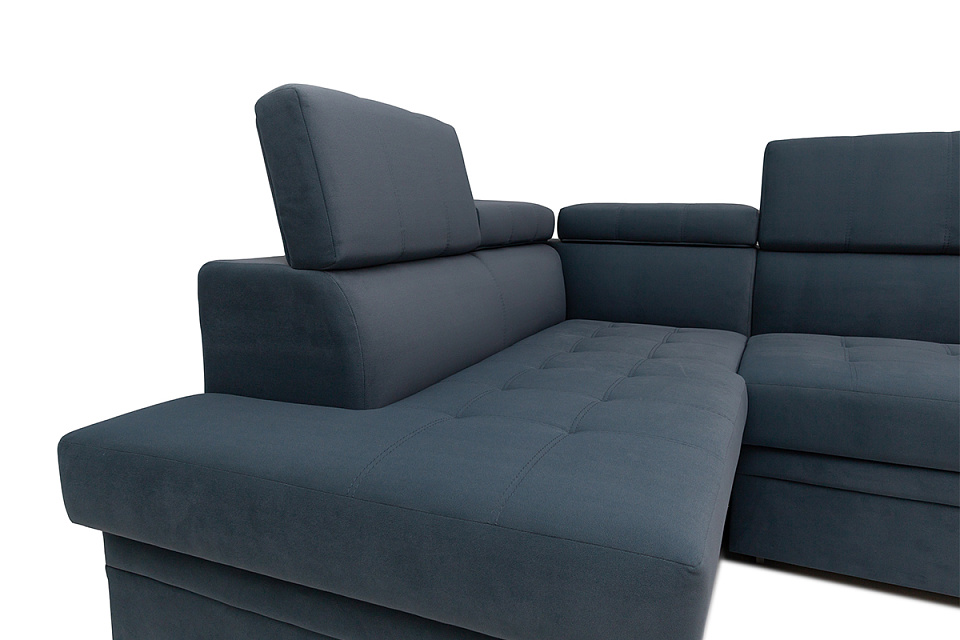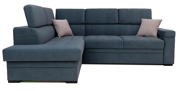 Диван-кровать угловой Влада — удобная, оригинальная модель, с большим спальным местом. В разложенном виде представляет удобную 2-х спальную кровать. Сидение на основе независимого пружинного блока. Имеется емкость для постельных принадлежностей в угловой части дивана. Подушки спинки не съемные, оснащены механизмом, который позволяет менять угол наклона. В комплект входят 3 декоративные подушки. Возможна комплектация левого и правого угла. Может изготавливаться в разных цветовых решениях. Механизм трансформации — «дельфин».