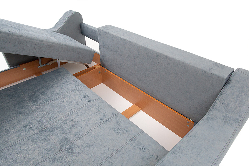 Сидение и спинка дивана на основе независимого пружинного блока. Основание сидения и спинки – пиломатериалы хвойных пород. Имеется 2 емкости для постельных принадлежностей.