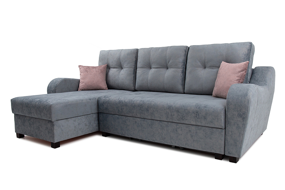 Диван-кровать угловой Ярослава состоит из средней секции 1С, угловой секции с подъемным механизмом 2П с ящиком для хранения, 3-х больших и двух маленьких декоративных подушек. Угол взаимозаменяемый — можно установить как с правой, так и с левой стороны.