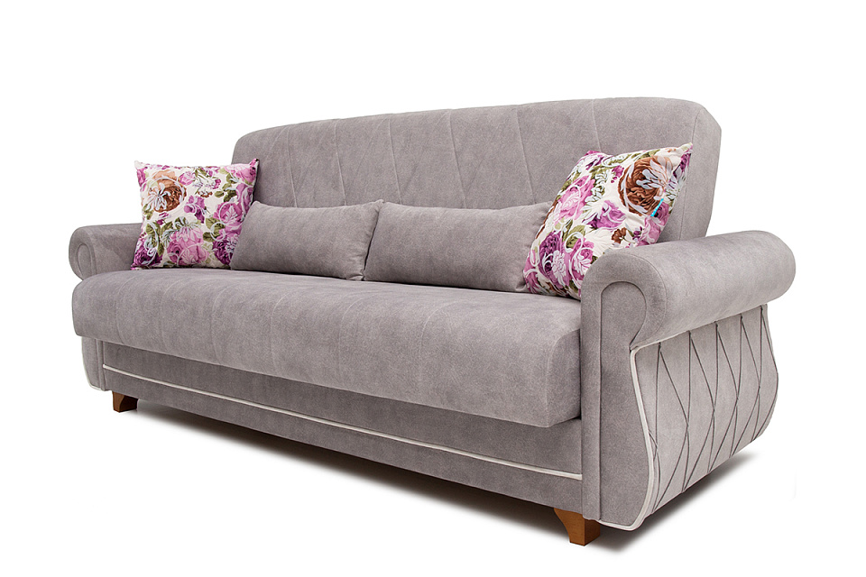 Диван-кровать Юлия-3 — современная, практичная модель предназначенная для ежедневного отдыха. Идеальное решение для небольшой гостиной городской квартиры. Диван на опорах из натурального массива, он будет удачно гармонировать с изделиями из натуральных пород дерева. В комплект входят две декоративные подушки. Имеется ящик для хранения. Механизм трансформации «книга» обеспечивает надёжность эксплуатации дивана.