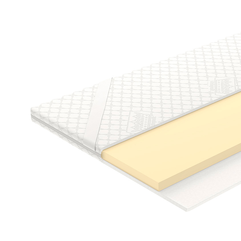 Эластичный наматрасник на основе трехсантиметровой плиты из новаторского материала MemoryFoam с эффектом памяти формы.