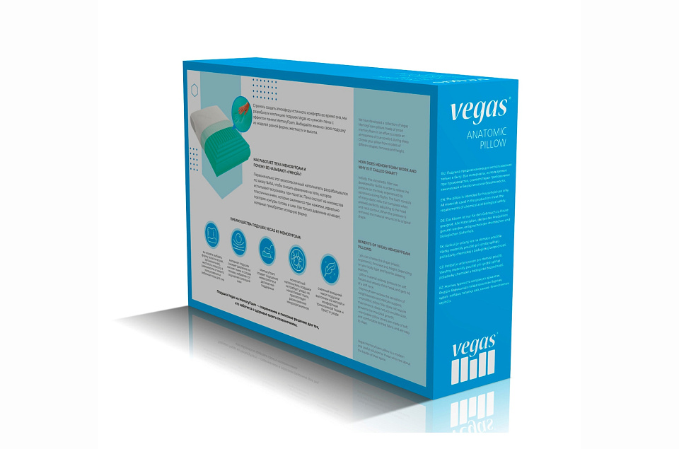 Перфорация пены MemoryFoam обеспечивает дополнительную вентиляцию и поддерживает комфортную температуру поверхности подушки во время сна. Два валика разной высоты удобны для сна как на боку, так и на спине.